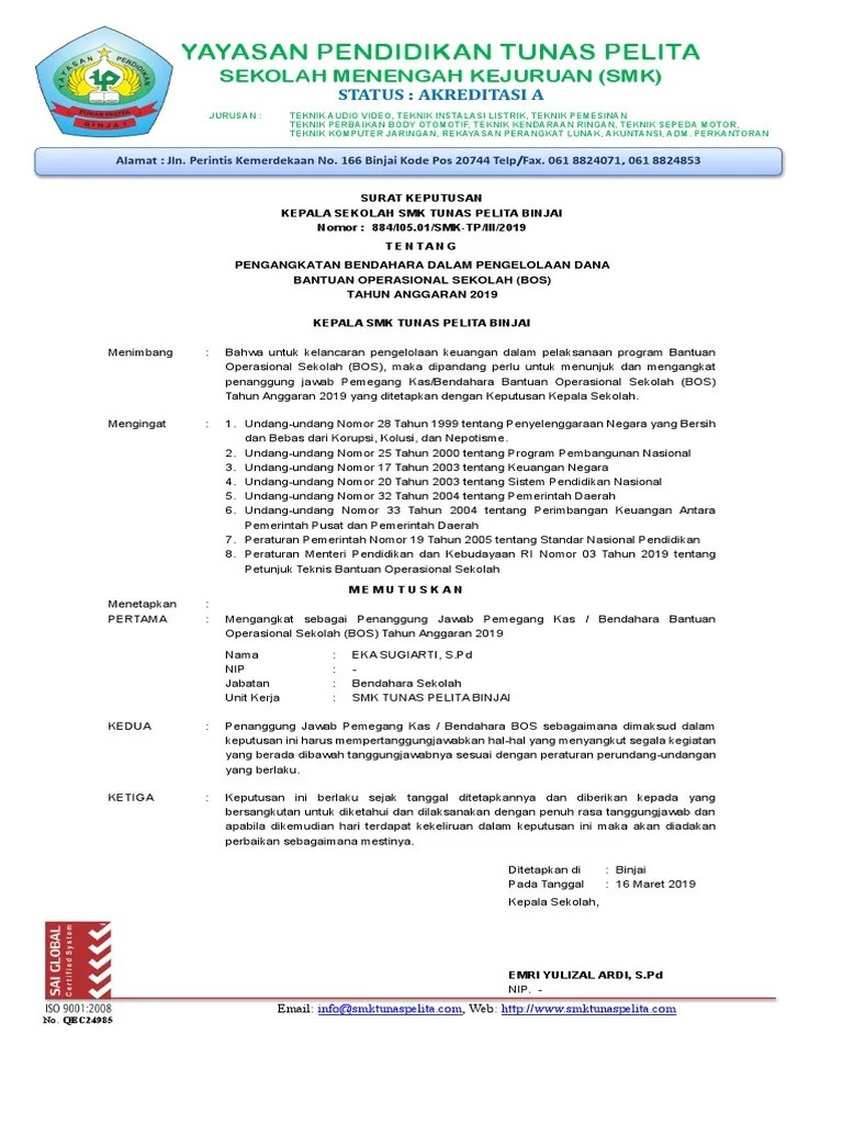 Sk Bendahara Bos : Sk Bendahara Pengeluaran Badilag 04 2013 : Sripendowo kecamatan bandar sribhawono, kabupaten lampung timur.
